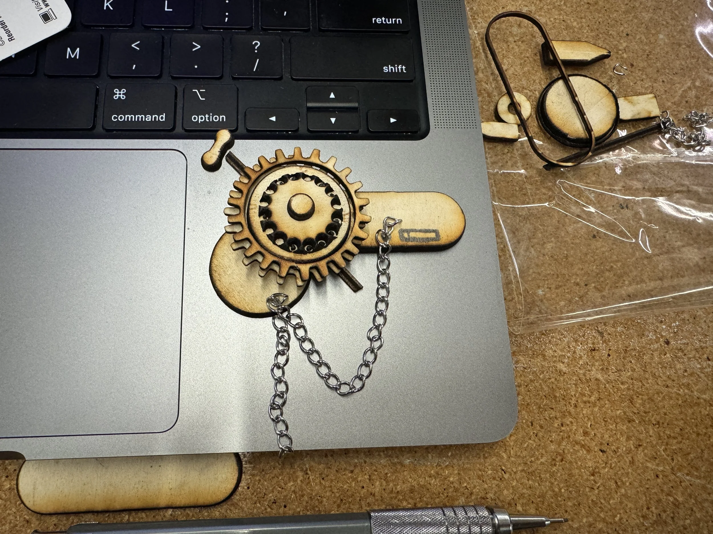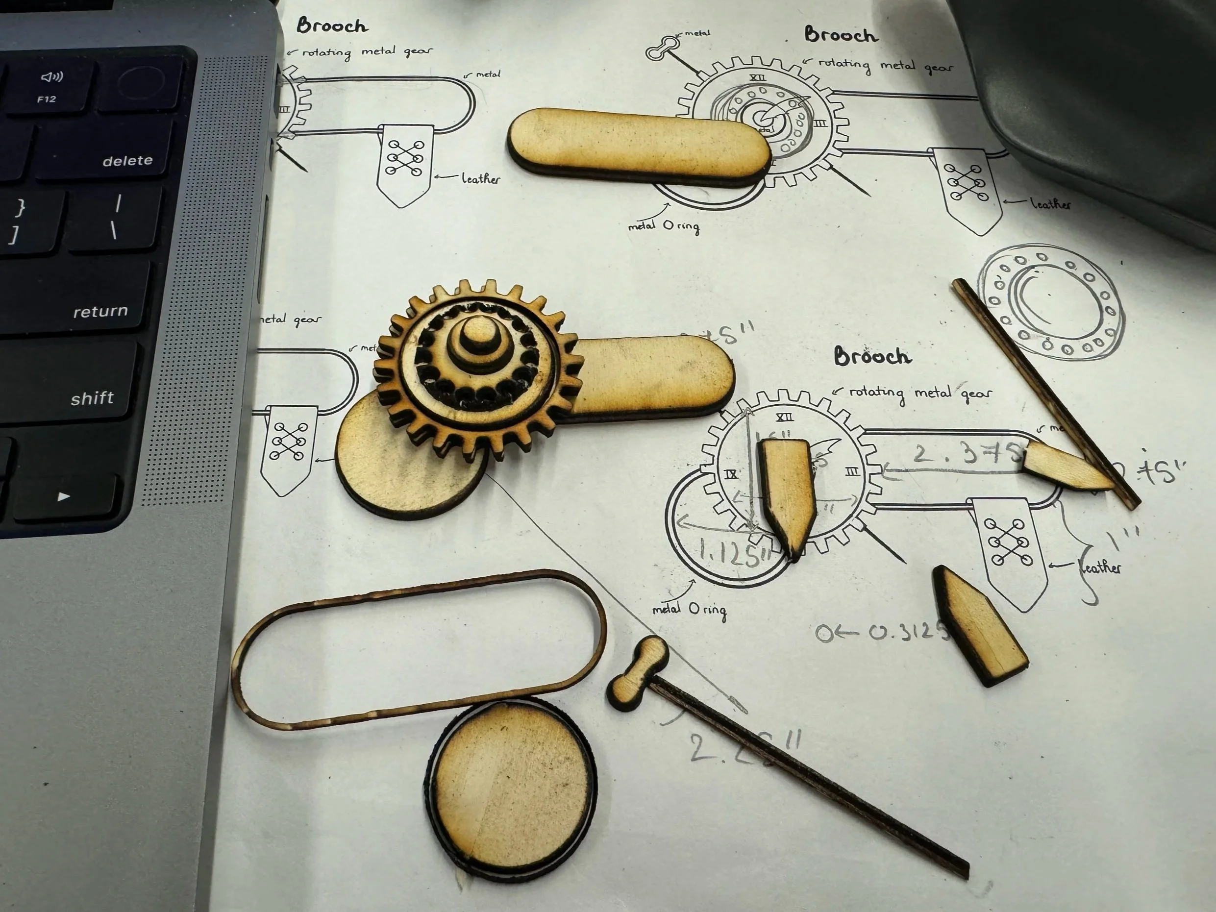 The final brooch integrates mechanical rotation, transforming a static object into an interactive piece.